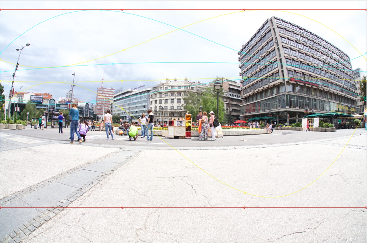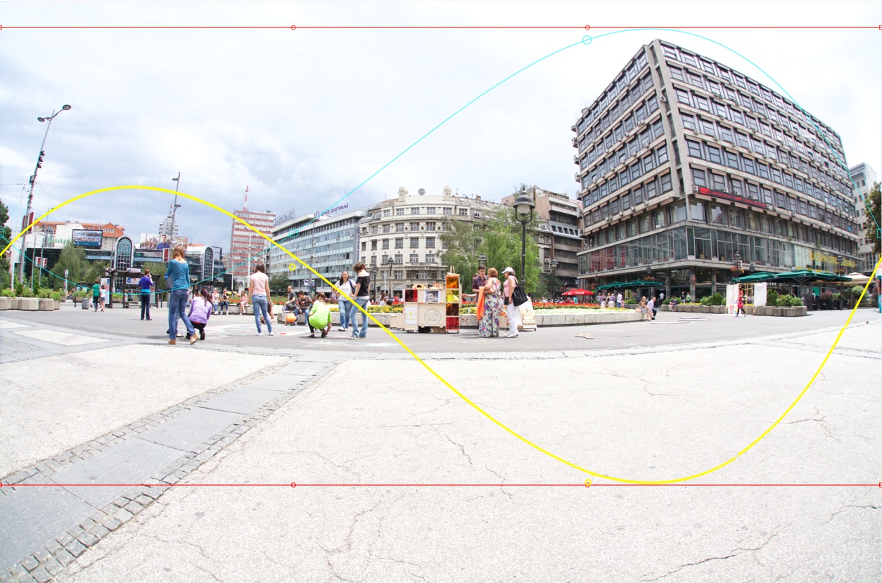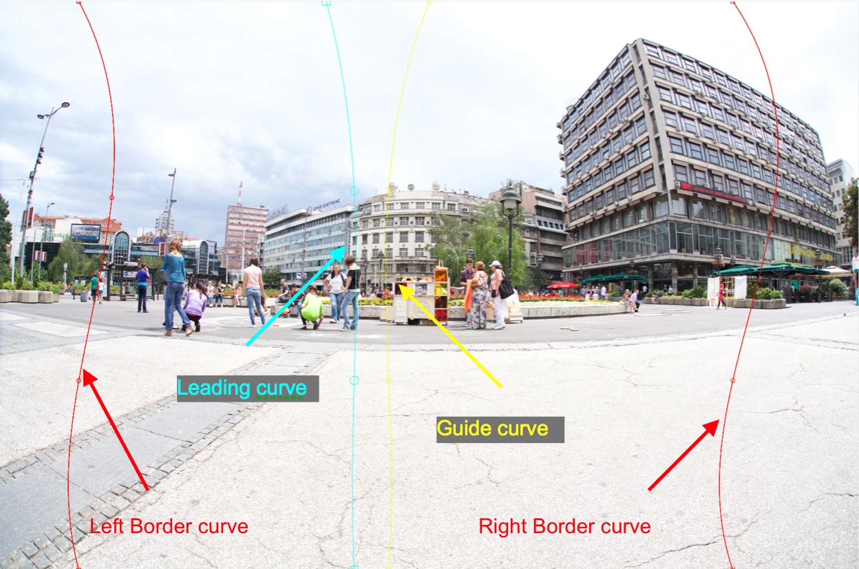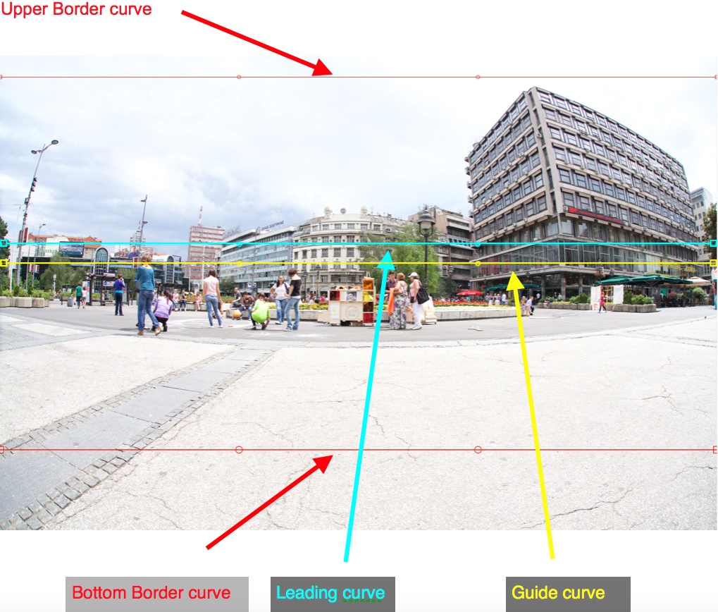 As you can see, the image processed between the Border curves and the upper part is a little stretched and the lower part is a little widened. This method performs Straighten from the Guide curve to the Leading curve. There is another feature of Advanced Straighten that is very important - Guide and Leading curves cannot overlap Border curves. This means that you can move the Anchor and Control points of the Guide and Leading curves until the curve touches the Border curve: