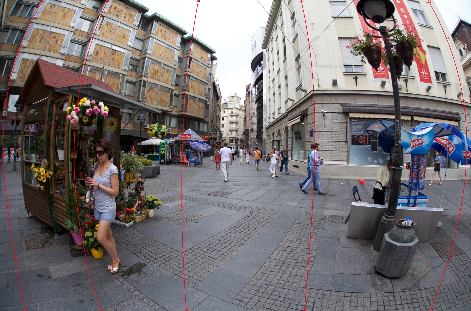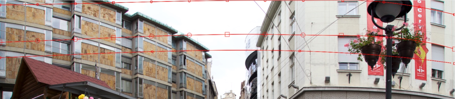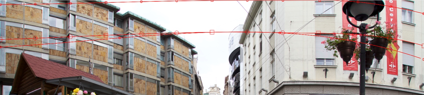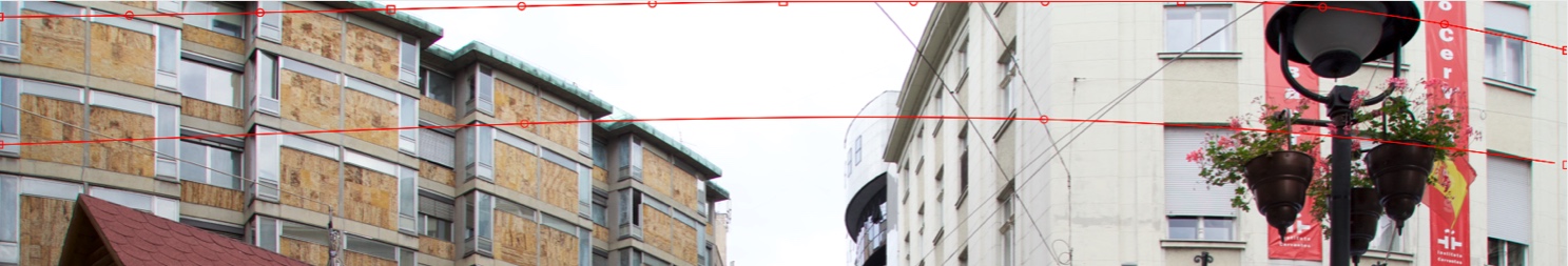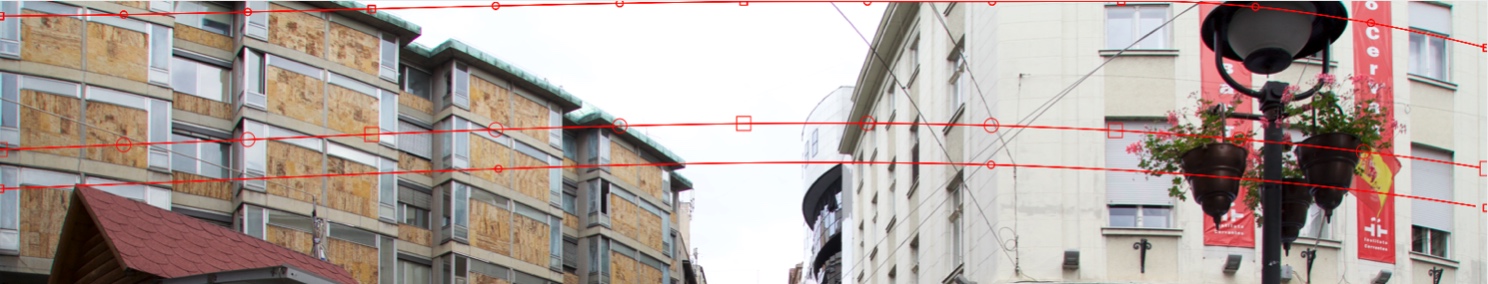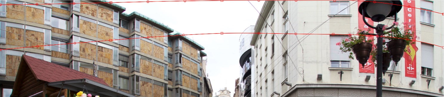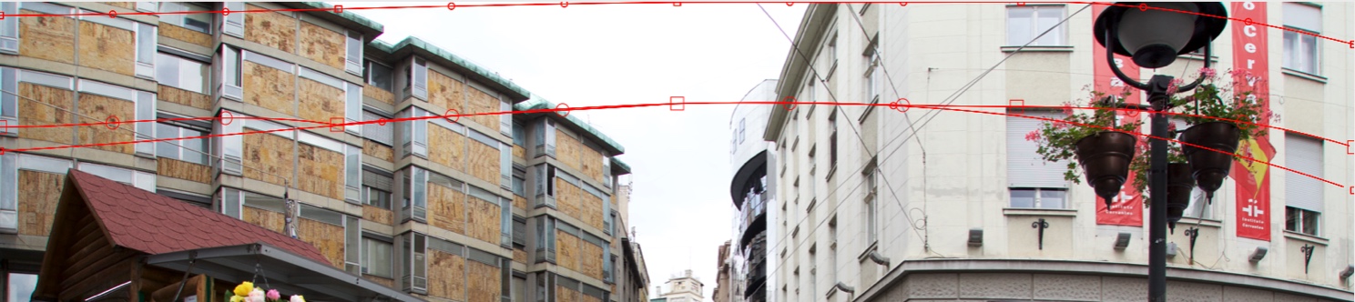 Let us do a Horizontal Straighten. Add the first Horizontal curve at the top of the image. Try to accomplish a curve shape nearest to the curvature of the right beige building: